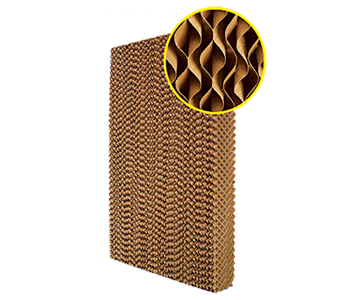 ZR濕簾降溫系統(tǒng)的降溫過程是在基核心-ZR紙墊內(nèi)完成的。在波紋的纖維紙表面有層薄薄的水膜,當(dāng)室外干熱空氣被風(fēng)機(jī)抽吸穿過紙墊時,水膜上的水會吸收空氣中的熱量進(jìn)而蒸發(fā)在水蒸氣,這樣經(jīng)過處理后的涼爽濕潤的空氣就進(jìn)入室內(nèi)了。這自然的過程猶如風(fēng)吹過水面一樣。